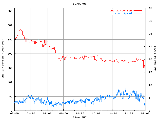 - Max Wind Speed: 8.6 ms-1 Time: 19:03:35 GMT