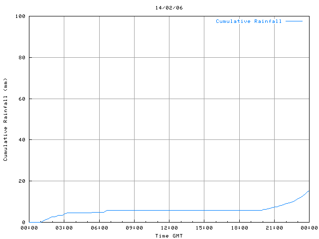 The PML meteorological station, situated on the south-west corner of the building roof, consists of a Hygroclip S3 temperature and humidity sensor housed in a radiation shield, a Mierij Meteo solid state wind sensor (MMW-005), a Chelsea instruments half-hemisphere PAR sensor, a Li-Cor pyranometer (LI-200SZ) and an Omni Instruments 6" tipping bucket raingauge (RG200). The data are logged every 5 minutes using a Pace Scientific XR5 data logger. The real-time rainfall data is likely in error - the correct values will be displayed after a time lag of approximately 24 hours. The meteorological station is sheltered from winds in the north-east and underestimates winds from this quarter. To use these data please contact Dr Tim Smyth.