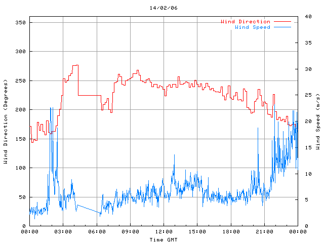 - Max Wind Speed: 23.6 ms-1 Time: 1:53:24 GMT