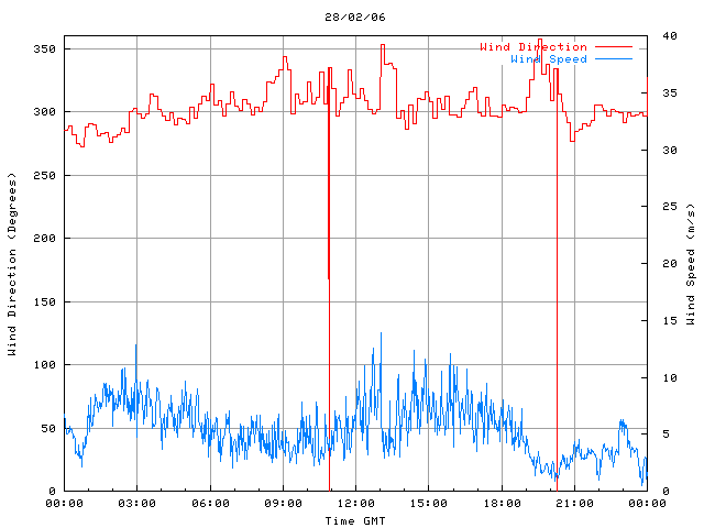 - Max Wind Speed: 13.9 ms-1 Time: 13:00:40 GMT