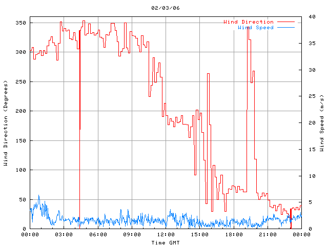 - Max Wind Speed: 6.4 ms-1 Time: 0:46:19 GMT