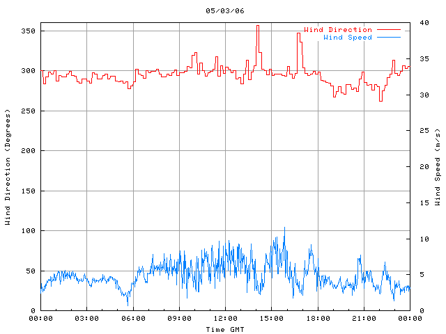 - Max Wind Speed: 11.6 ms-1 Time: 15:50:19 GMT