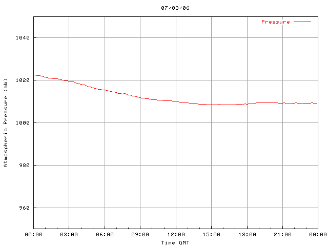 The PML meteorological station, situated on the south-west corner of the building roof, consists of a Hygroclip S3 temperature and humidity sensor housed in a radiation shield, a Mierij Meteo solid state wind sensor (MMW-005), a Chelsea instruments half-hemisphere PAR sensor, a Li-Cor pyranometer (LI-200SZ) and an Omni Instruments 6" tipping bucket raingauge (RG200). The data are logged every 5 minutes using a Pace Scientific XR5 data logger. The real-time rainfall data is likely in error - the correct values will be displayed after a time lag of approximately 24 hours. The meteorological station is sheltered from winds in the north-east and underestimates winds from this quarter. To use these data please contact Dr Tim Smyth.