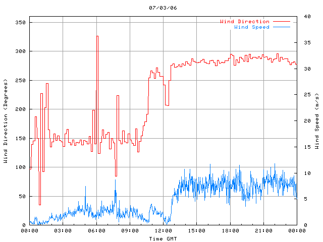- Max Wind Speed: 11.8 ms-1 Time: 22:00:18 GMT
