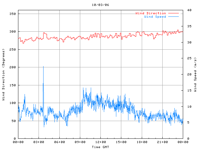 - Max Wind Speed: 22.5 ms-1 Time: 3:40:26 GMT