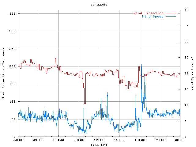 - Max Wind Speed: 23.0 ms-1 Time: 18:16:14 GMT
