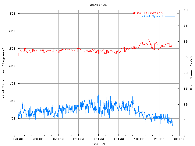 - Max Wind Speed: 13.0 ms-1 Time: 12:00:22 GMT