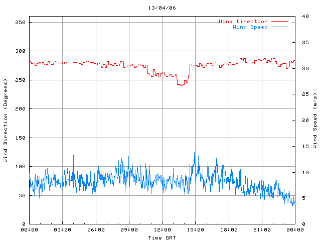 - Max Wind Speed: 13.8 ms-1 Time: 14:52:10 GMT