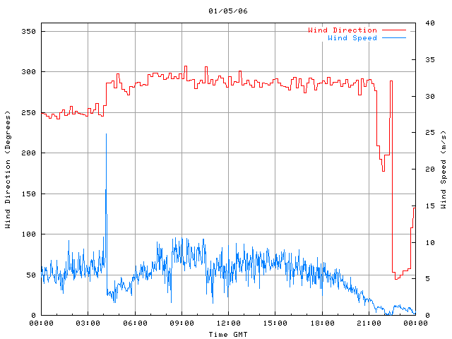- Max Wind Speed: 24.9 ms-1 Time: 4:10:16 GMT