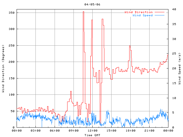 - Max Wind Speed: 6.3 ms-1 Time: 22:46:14 GMT