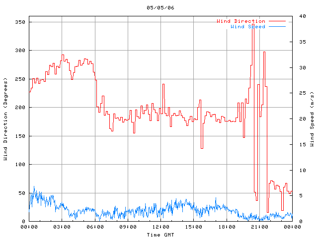 - Max Wind Speed: 6.8 ms-1 Time: 0:26:14 GMT