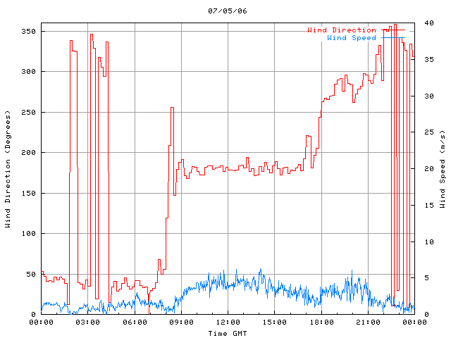 - Max Wind Speed: 6.6 ms-1 Time: 14:05:14 GMT