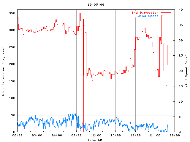 - Max Wind Speed: 6.8 ms-1 Time: 8:54:16 GMT