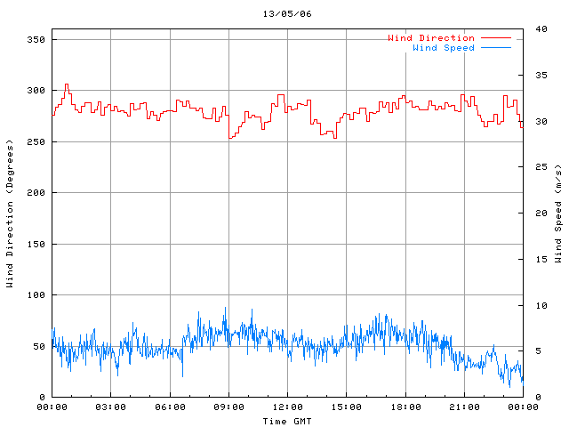 - Max Wind Speed: 9.8 ms-1 Time: 8:48:16 GMT