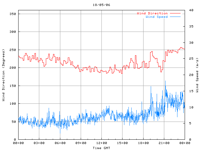 - Max Wind Speed: 25.0 ms-1 Time: 19:19:12 GMT