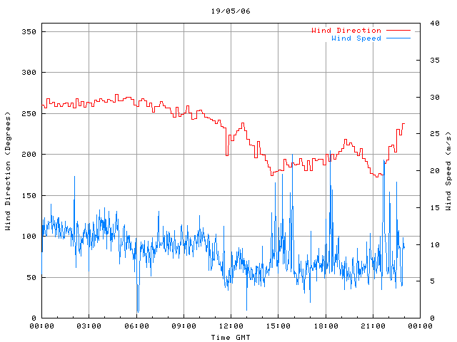 - Max Wind Speed: 22.7 ms-1 Time: 18:16:14 GMT