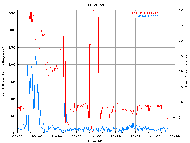 - Max Wind Speed: 24.9 ms-1 Time: 2:44:22 GMT
