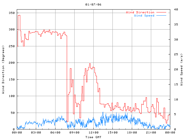 - Max Wind Speed: 6.4 ms-1 Time: 18:59:22 GMT