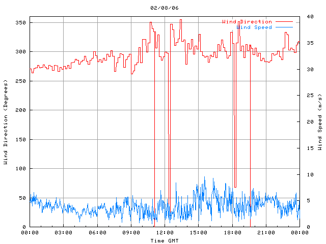 - Max Wind Speed: 9.6 ms-1 Time: 15:32:22 GMT