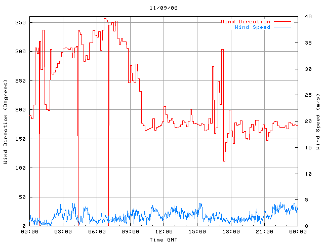- Max Wind Speed: 4.7 ms-1 Time: 23:35:22 GMT