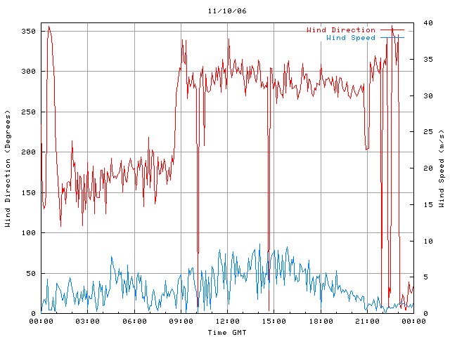 - Max Wind Speed: 9.6 ms-1 Time: 14:05:15 GMT