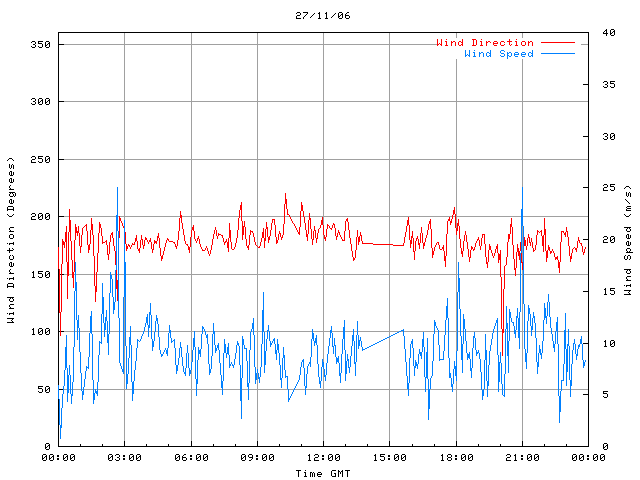 - Max Wind Speed: 25.0 ms-1 Time: 21:00:33 GMT