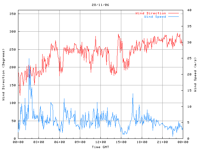 - Max Wind Speed: 24.9 ms-1 Time: 1:35:32 GMT
