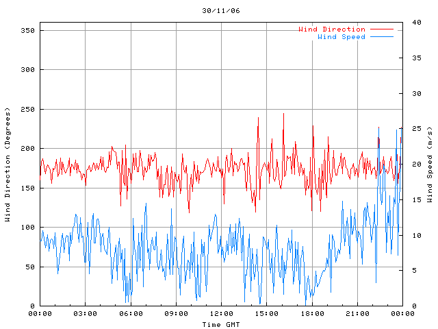 - Max Wind Speed: 25.0 ms-1 Time: 22:23:44 GMT