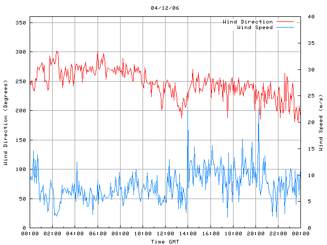 - Max Wind Speed: 22.6 ms-1 Time: 20:15:04 GMT