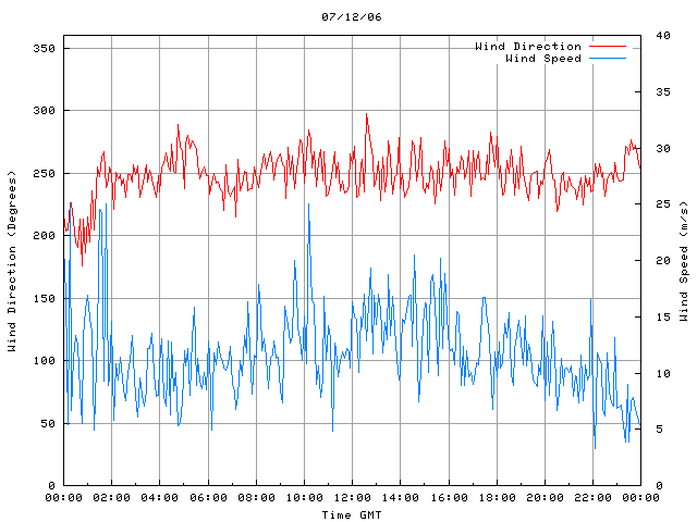 - Max Wind Speed: 25.0 ms-1 Time: 10:10:06 GMT