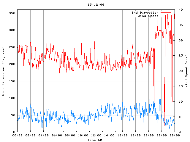- Max Wind Speed: 12.0 ms-1 Time: 21:45:09 GMT