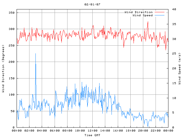 - Max Wind Speed: 25.0 ms-1 Time: 3:00:13 GMT