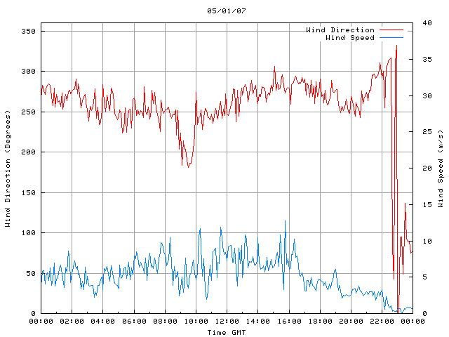 - Max Wind Speed: 12.7 ms-1 Time: 15:45:15 GMT