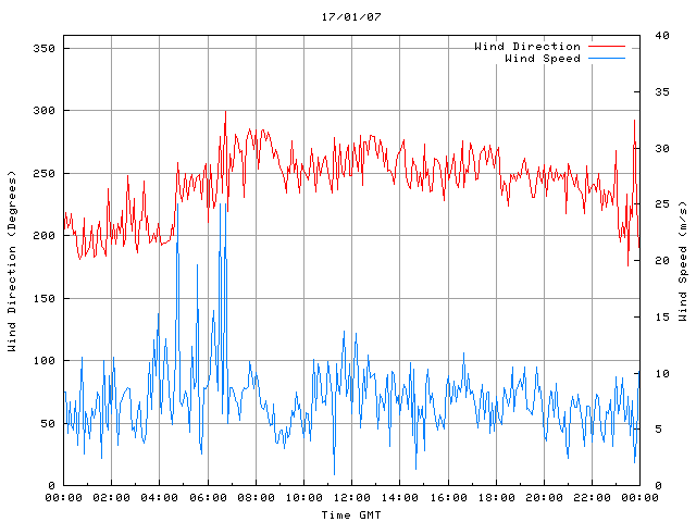 - Max Wind Speed: 25.0 ms-1 Time: 6:30:18 GMT
