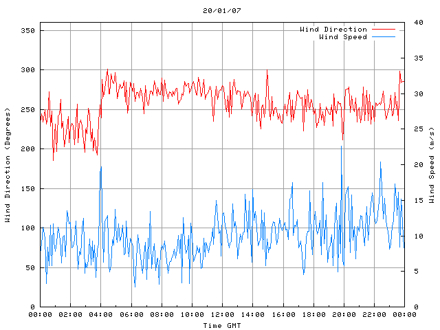 - Max Wind Speed: 22.6 ms-1 Time: 19:50:19 GMT