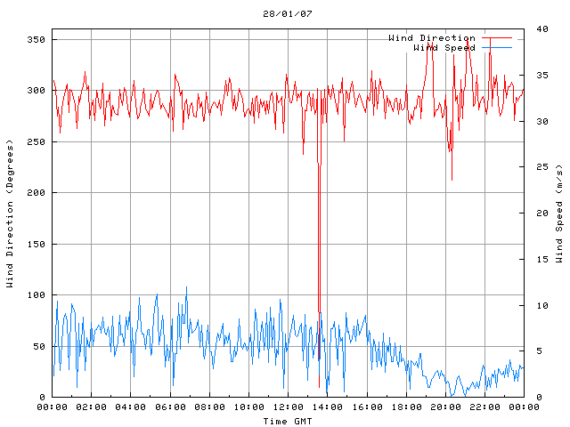 - Max Wind Speed: 12.0 ms-1 Time: 6:50:21 GMT