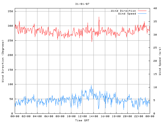 - Max Wind Speed: 10.7 ms-1 Time: 13:35:24 GMT