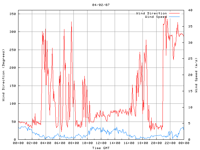 - Max Wind Speed: 4.0 ms-1 Time: 1:00:17 GMT