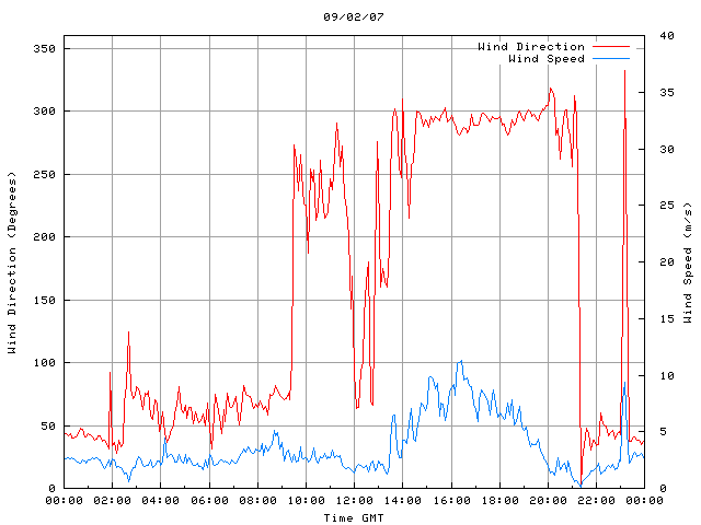 - Max Wind Speed: 11.3 ms-1 Time: 16:25:17 GMT