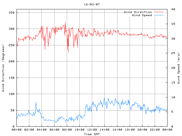 - Max Wind Speed: 9.7 ms-1 Time: 13:55:17 GMT
