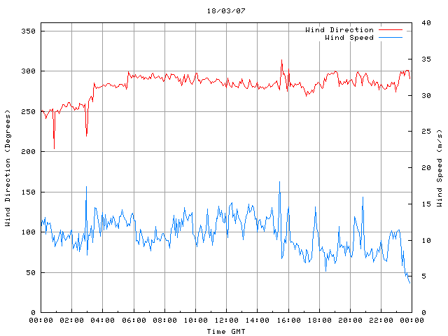 - Max Wind Speed: 18.0 ms-1 Time: 15:25:17 GMT