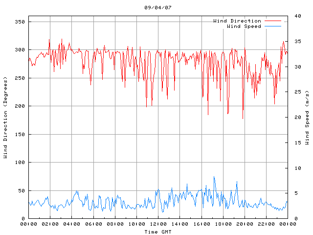 - Max Wind Speed: 8.3 ms-1 Time: 17:10:17 GMT