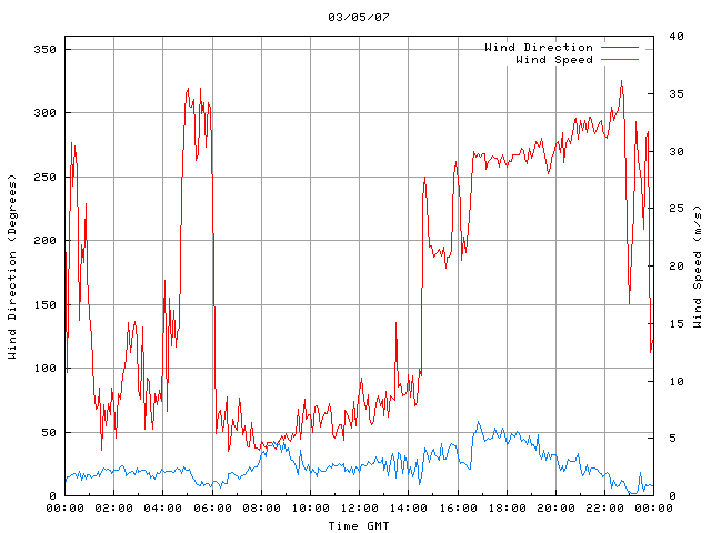 - Max Wind Speed: 6.5 ms-1 Time: 16:50:17 GMT
