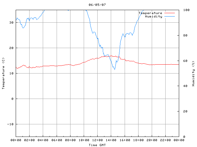 - Max Temp: 17.0 °C Time: 14:00:17 GMT