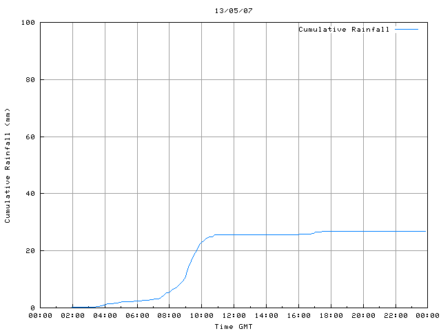 - Max Rainfall Rate: 21.00 mm h-1 Time: 9:05:17 GMT