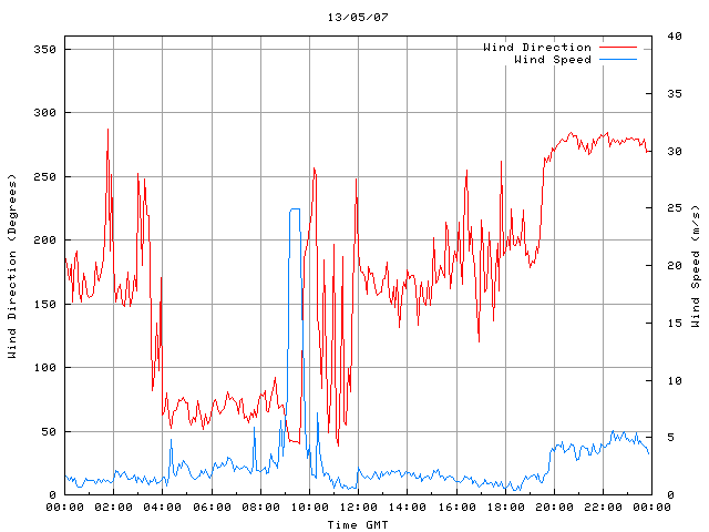 - Max Wind Speed: 25.0 ms-1 Time: 9:15:17 GMT