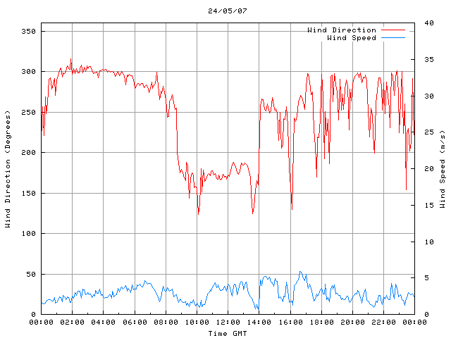 - Max Wind Speed: 5.9 ms-1 Time: 16:40:17 GMT