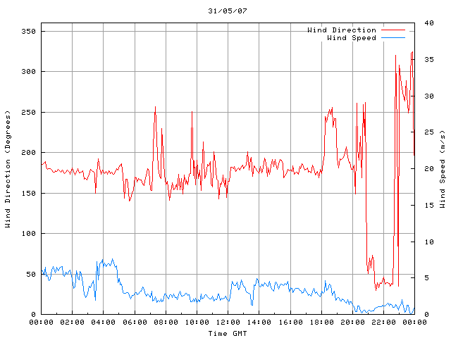 - Max Wind Speed: 7.7 ms-1 Time: 4:35:17 GMT