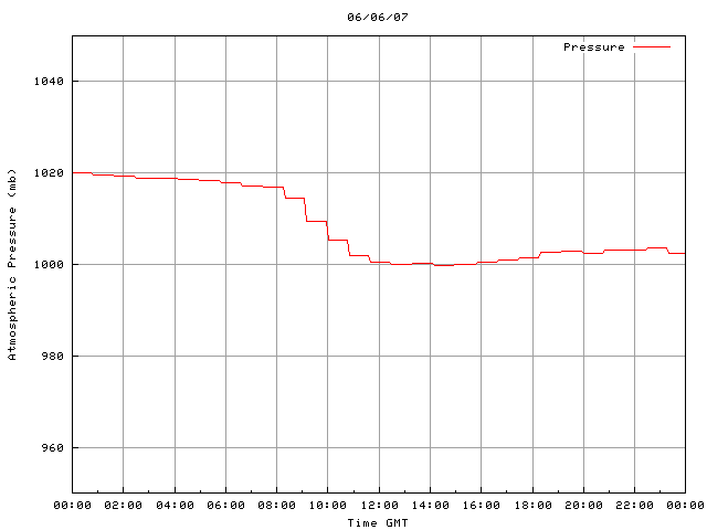 The PML meteorological station, situated on the south-west corner of the building roof, consists of a Hygroclip S3 temperature and humidity sensor housed in a radiation shield, a Mierij Meteo solid state wind sensor (MMW-005), a Chelsea instruments half-hemisphere PAR sensor, a Li-Cor pyranometer (LI-200SZ) and an Omni Instruments 6" tipping bucket raingauge (RG200). The data are logged every 5 minutes using a Pace Scientific XR5 data logger. The real-time rainfall data is likely in error - the correct values will be displayed after a time lag of approximately 24 hours. The meteorological station is sheltered from winds in the north-east and underestimates winds from this quarter. To use these data please contact Dr Tim Smyth.