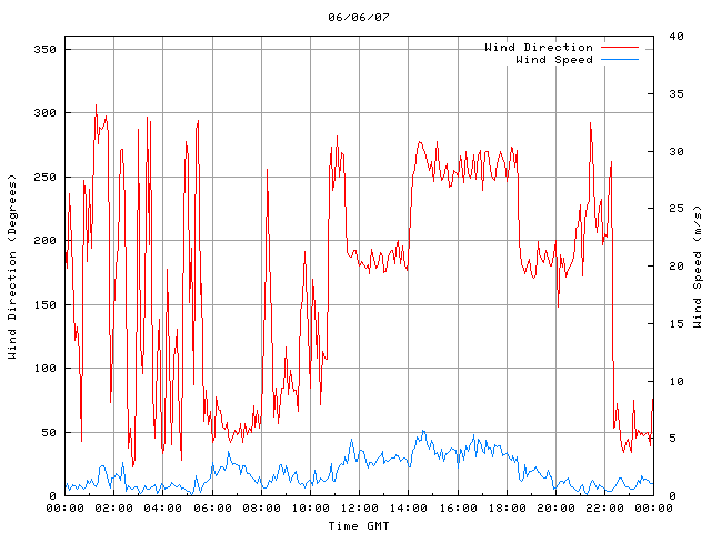 - Max Wind Speed: 5.7 ms-1 Time: 14:35:17 GMT